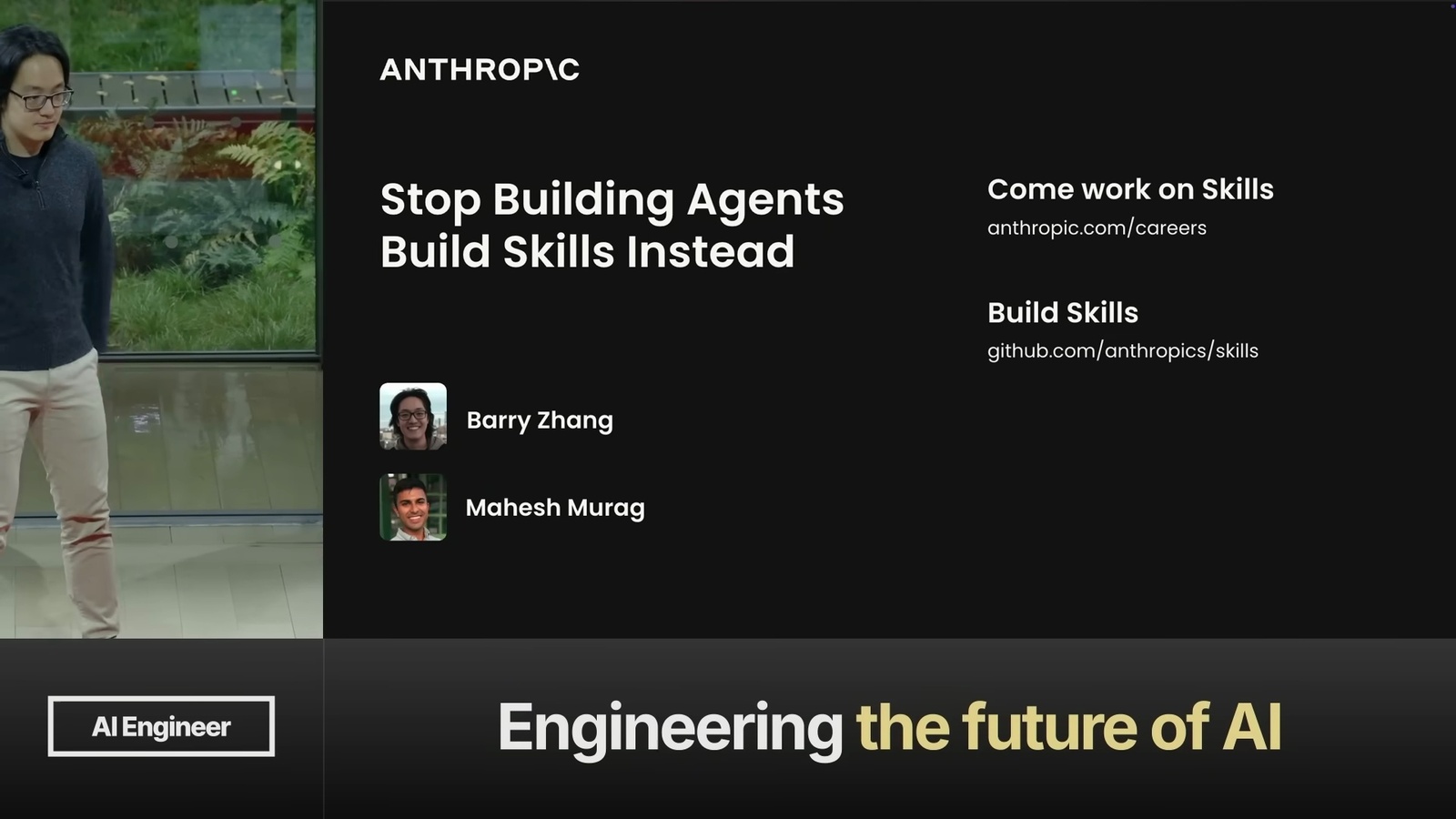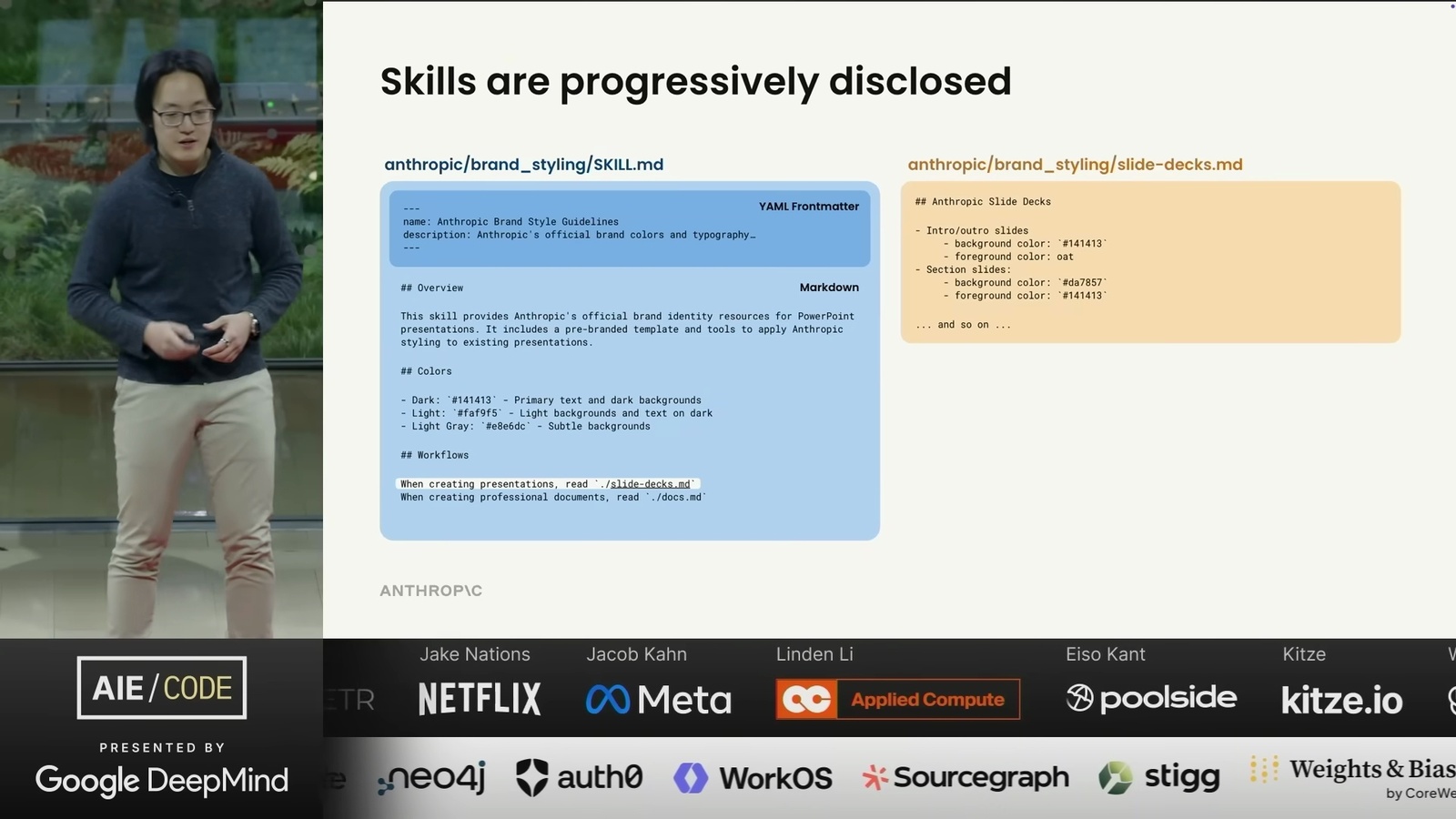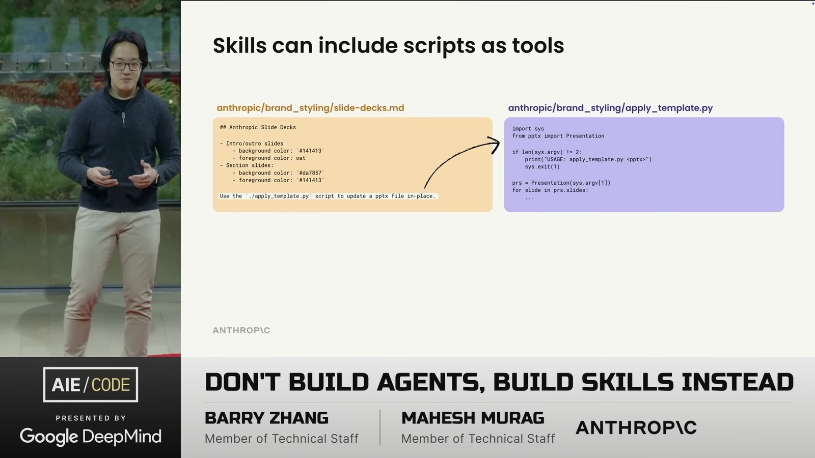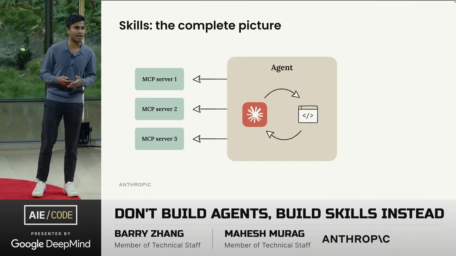 看了一場 Anthropic 的演講 Don’t Build Agents, Build Skills Instead,由 Barry Zhang 和 Mahesh Murag 兩位 Anthropic 工程師主講。這是我將影片轉成逐字稿的全文: ihower.tw/watch/dont_build_agents_build_skills_instead
